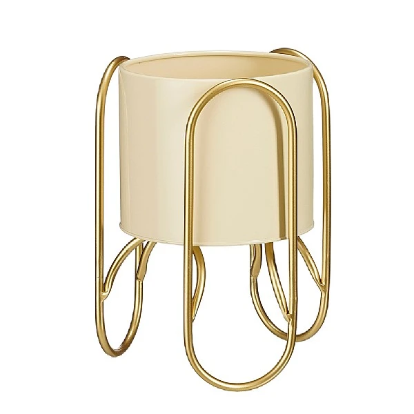 - With an abstract design and gold metal stand, this pot makes a great statement piece in a modern home